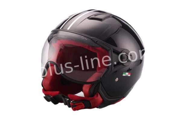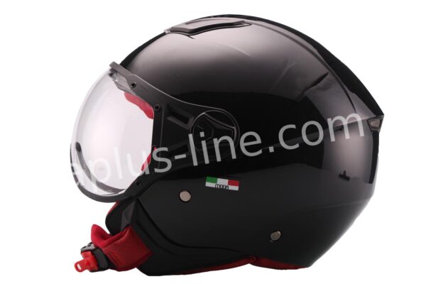 VITO MODA Jethelm Glans Zwart met Rood binnen werk, HELM VITO JET MODA GLANS ZWART